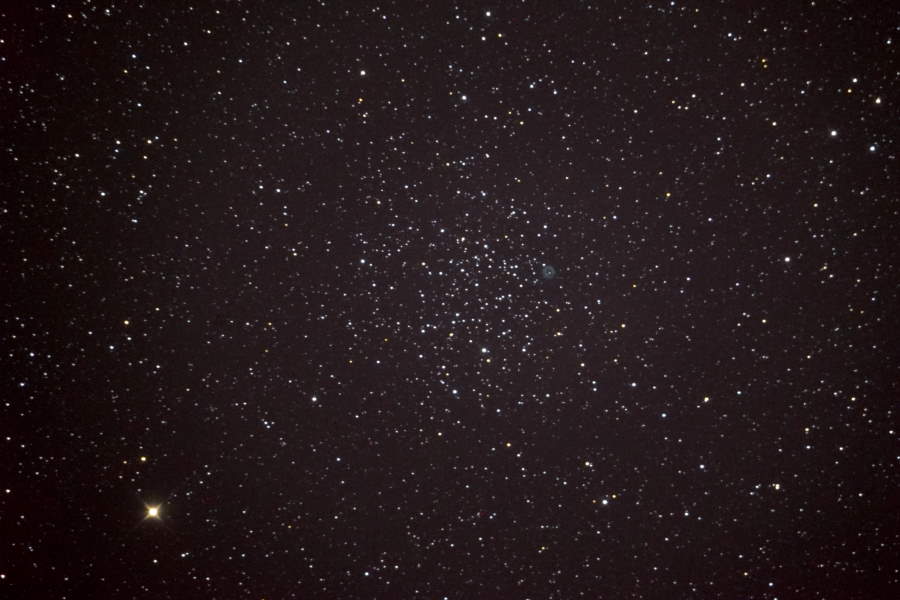 Der offene Sternhaufen, von Mitteleuropa aus westlich des hellen Sterns Sirius zu finden, hat eine Besonderheit. In ihm befindet sich einplanetarischer Nebel mit der Bezeichnung NGC 2438.
